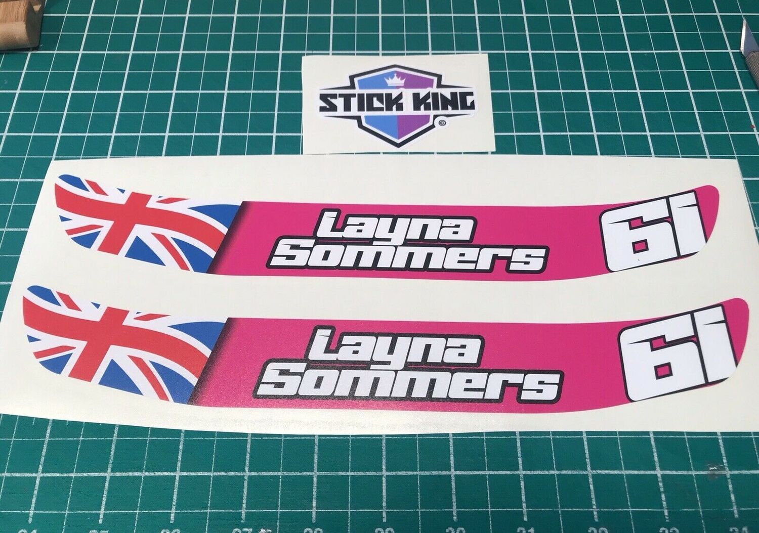 2 X Custom Name Number British Flag Helmet Visor Sunstrip Sticker Decal - 300mm