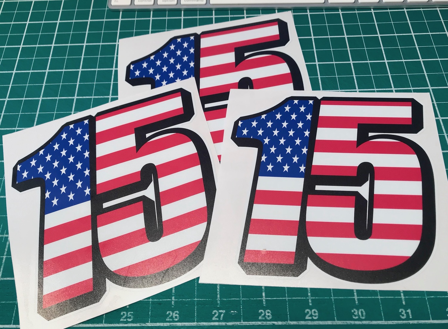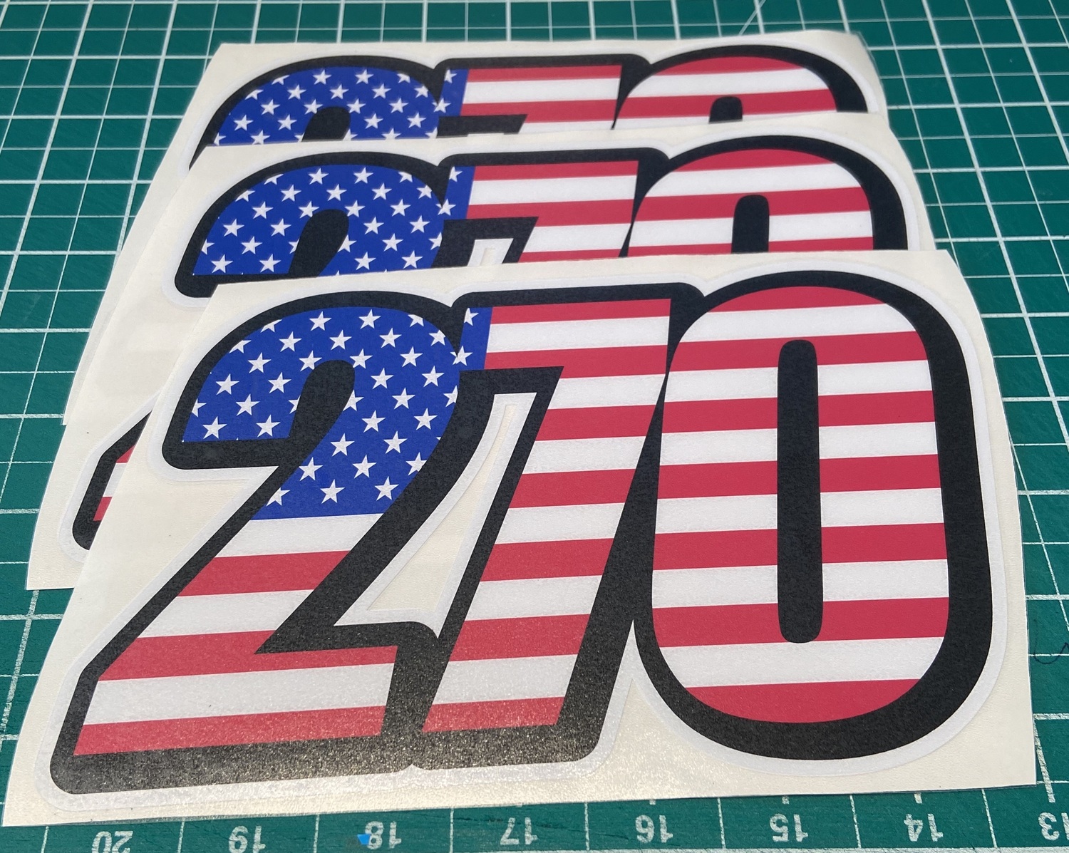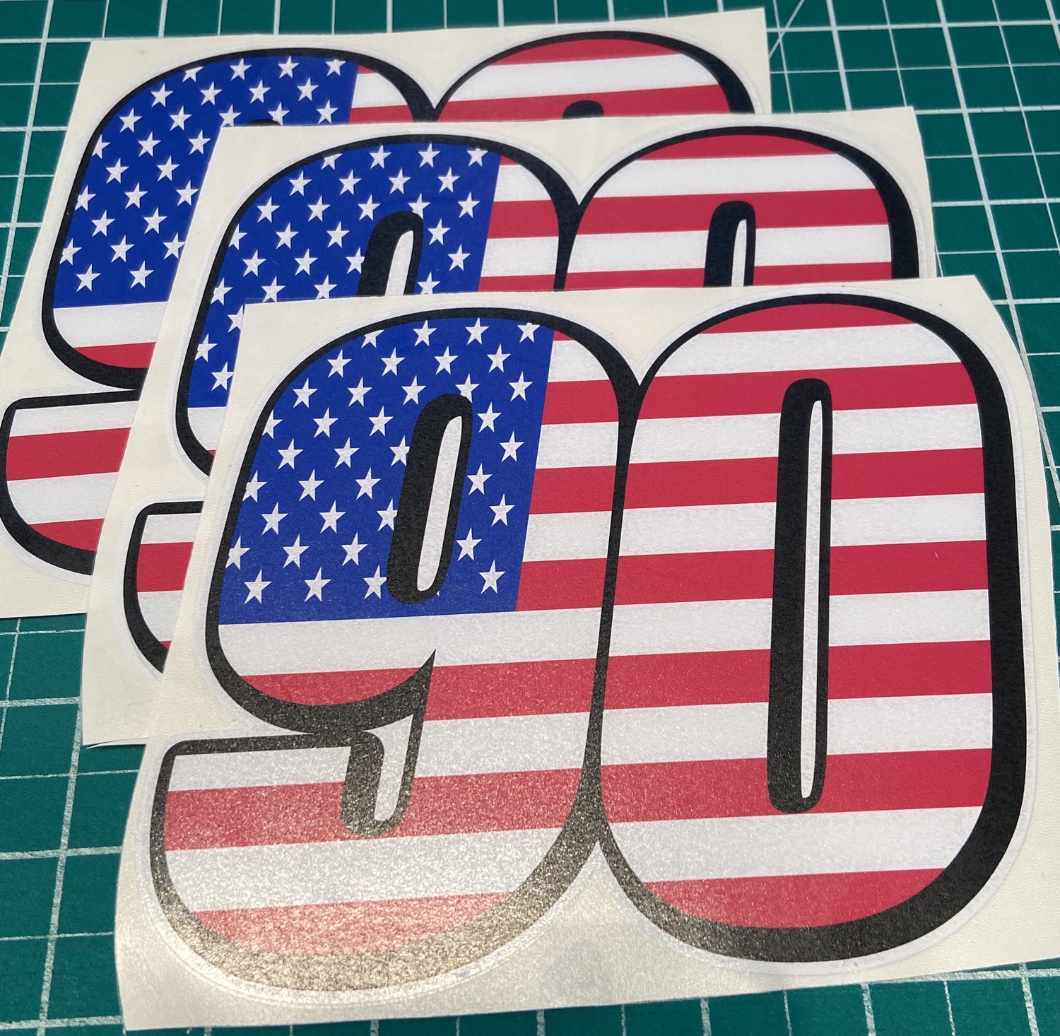 3 x Race Number Stickers / USA Flag style style as pictured