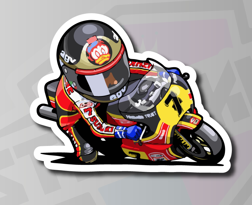 Barry Sheene #7 Suzuki MotoGP Cartoon Racer Sticker Decal