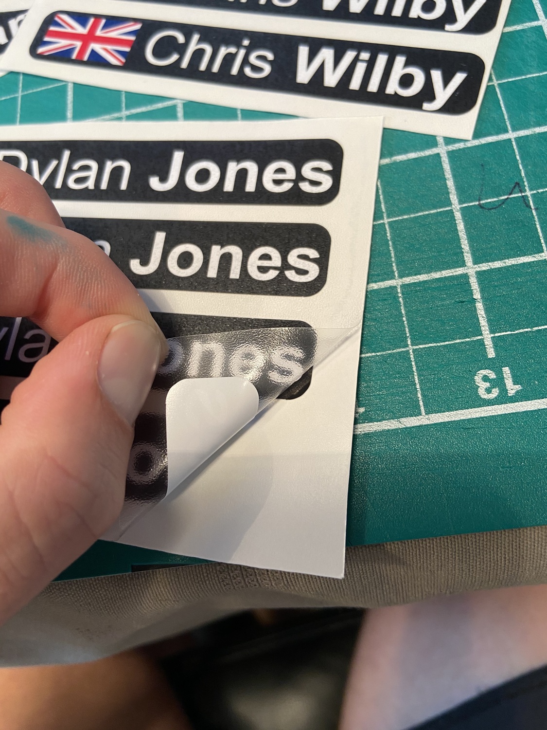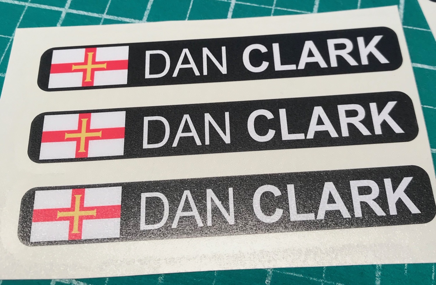 3 X Custom Rider Name Helmet Stickers - Bike Bicycle Cycling - Choose Flag