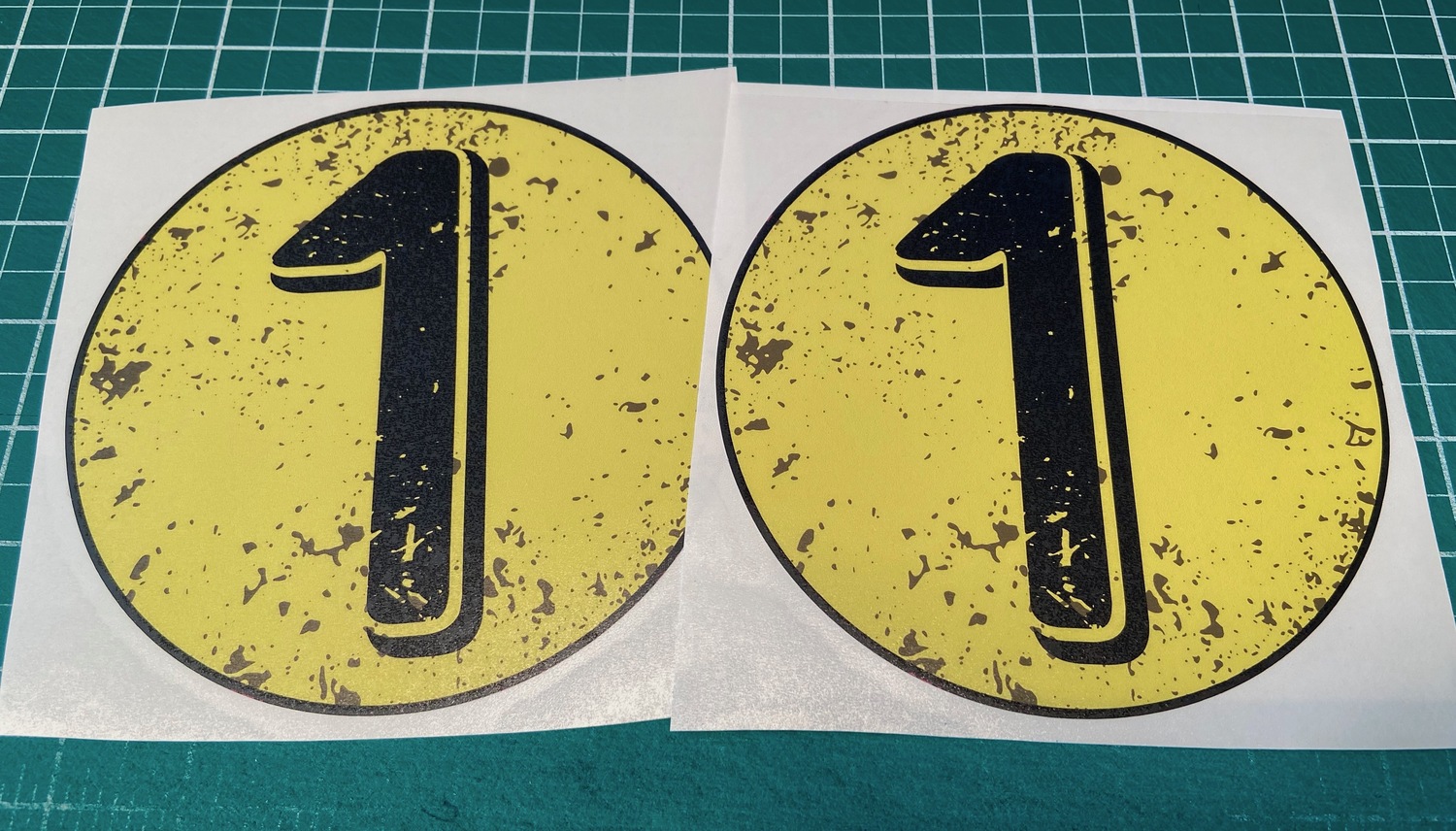 2 x Yellow Classic Race Number Stickers / Decals style as pictured
