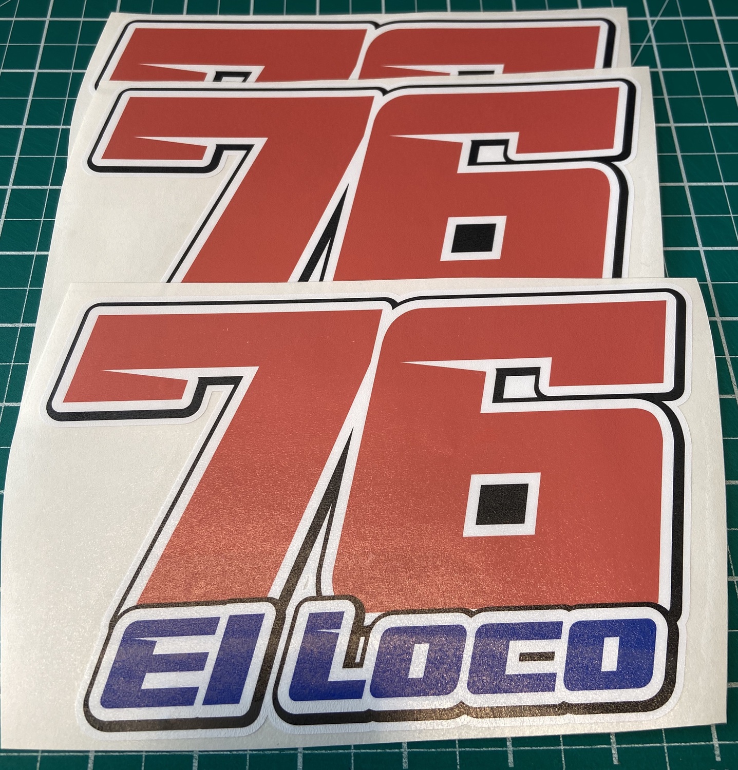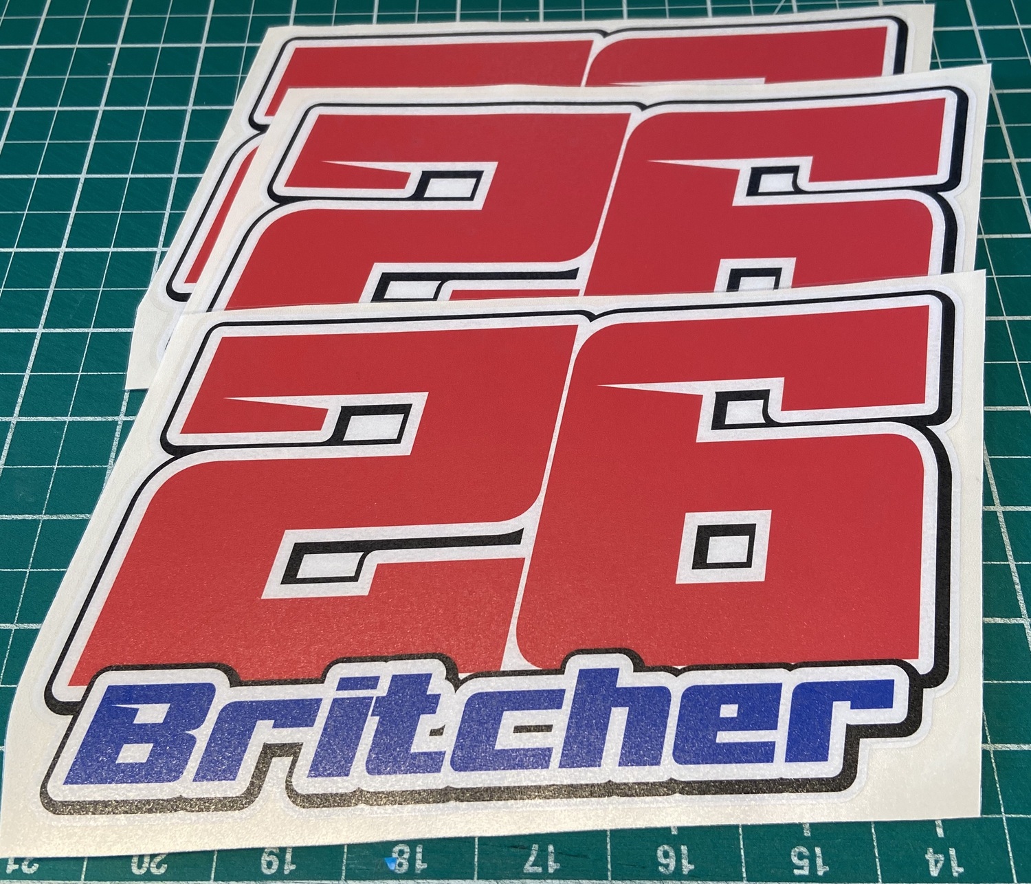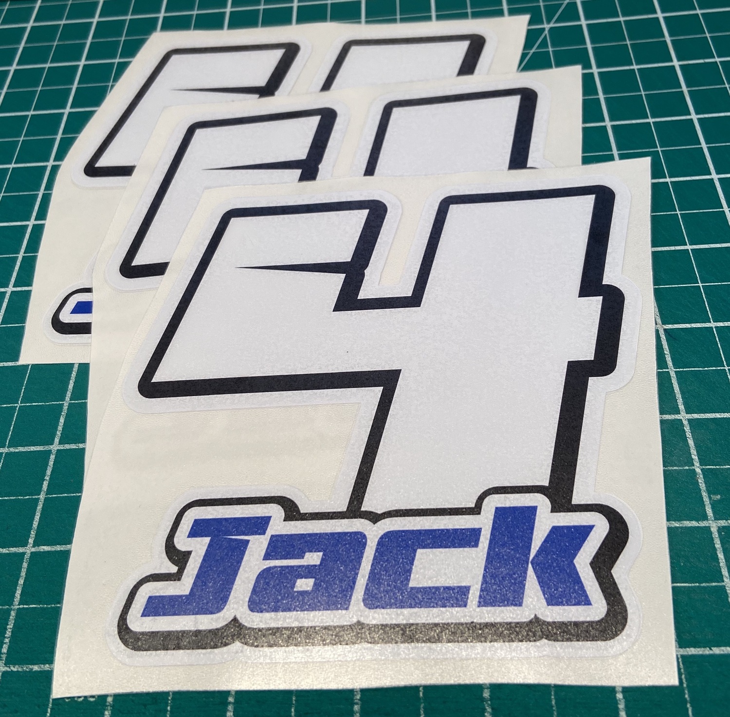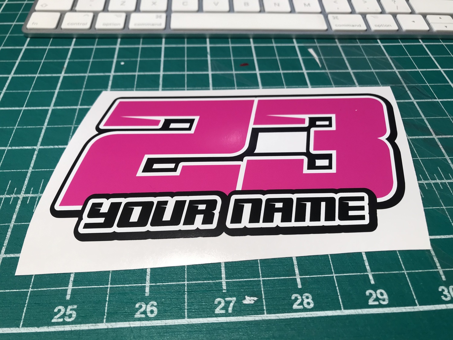 3 X Custom Race Number & Name - Vinyl Stickers / Decals